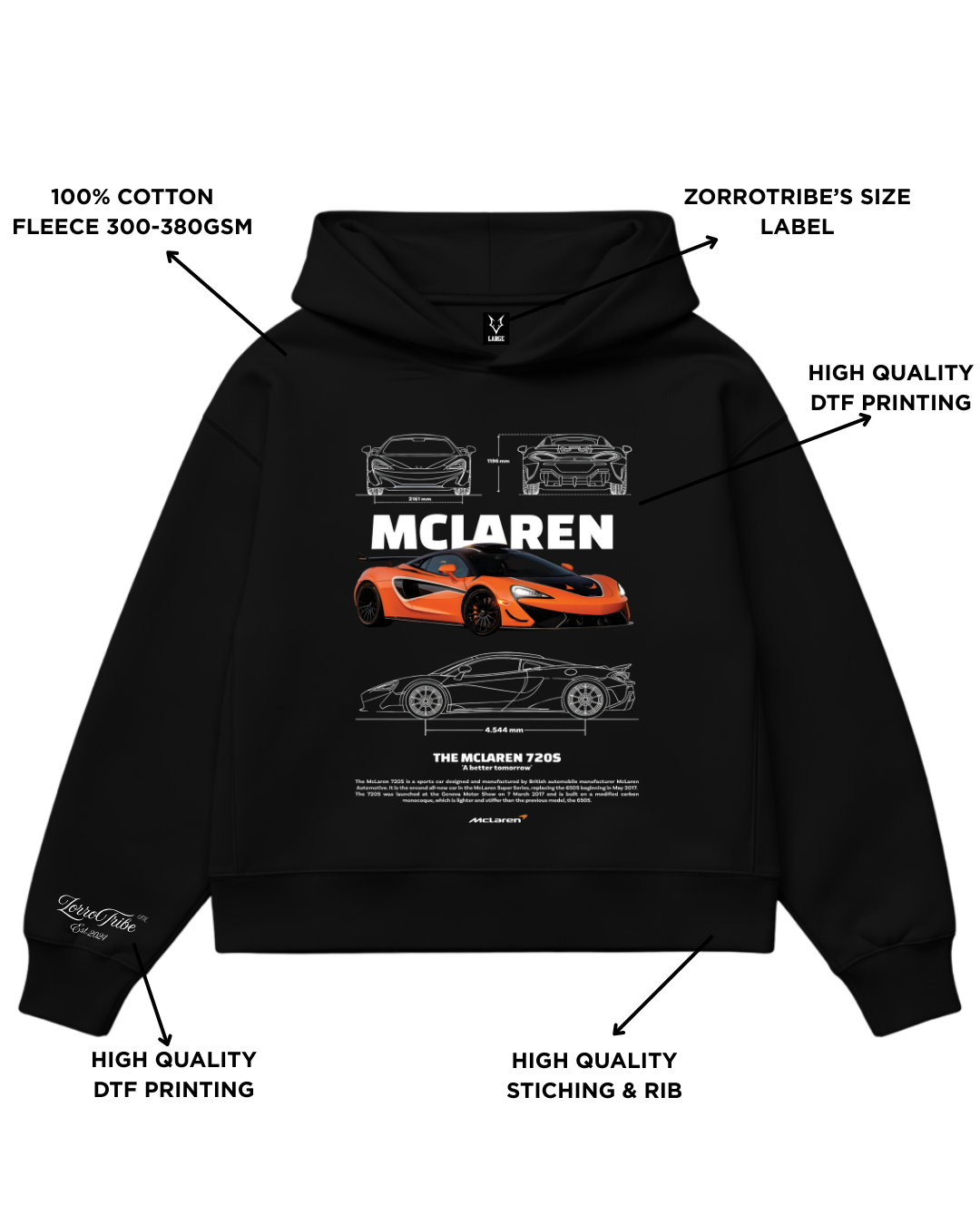 Step into the future of performance. The 720S Blueprint edition celebrates one of the most advanced supercars ever built. Featuring the iconic McLaren 720S in signature orange, this design combines a photorealistic render with precise technical wireframes and engineering specs. It’s a tribute to the relentless pursuit of speed and the art of the "Super Series."