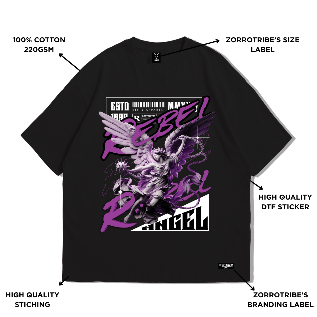 This isn’t just art — it’s attitude. The REBEL ANGEL tee features a sharp anime-inspired graphic that blends glitchy manga style with raw, underground energy. The piercing stare, cosmic icons, and bold Japanese type scream don’t follow, lead. It's not for the faint — it's for the ones rewriting their own code.