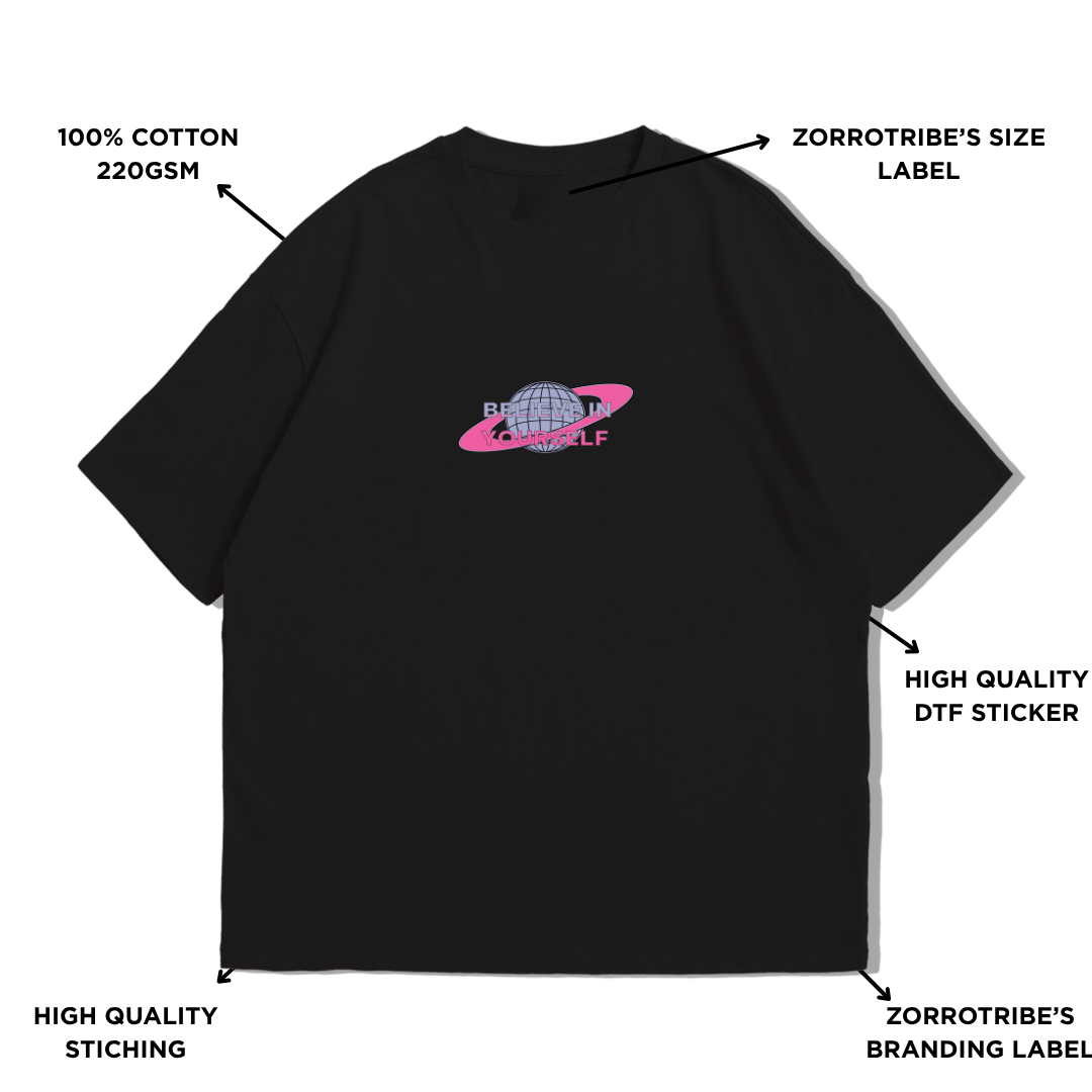 A daily reminder in the form of a statement piece. The Believe in Yourself Tee blends quiet confidence with bold energy — crafted from soft, premium cotton in an oversized fit built for everyday wear. Wear it loud. Mean it more.