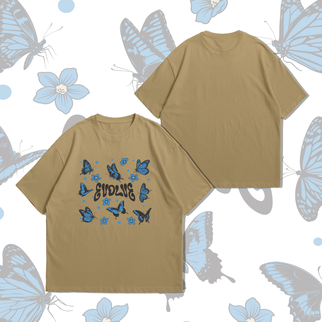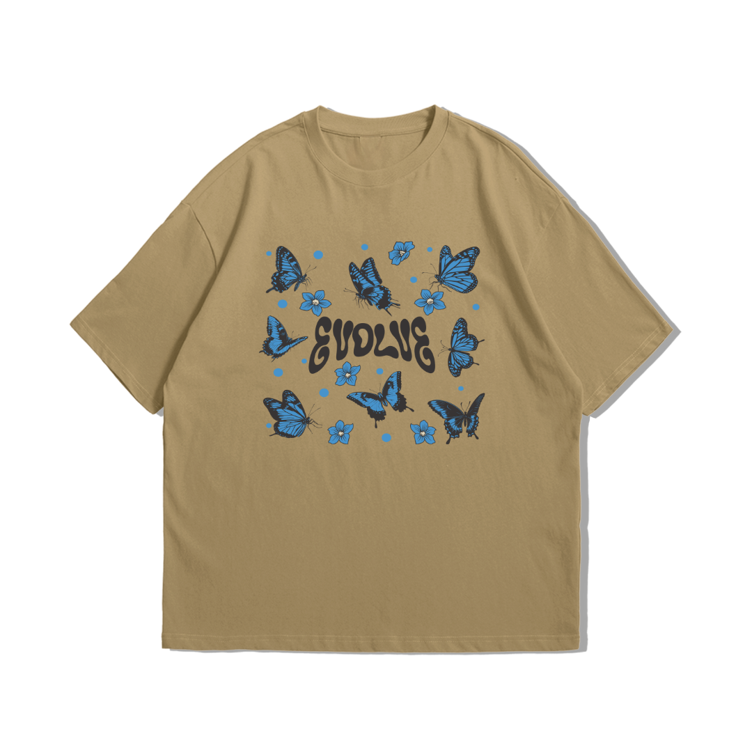 A bold khaki tee featuring vibrant blue butterflies and the word EVOLVE at its core — symbolizing growth and transformation. Made from soft cotton in a relaxed fit, it's your everyday reminder to keep moving forward in style.